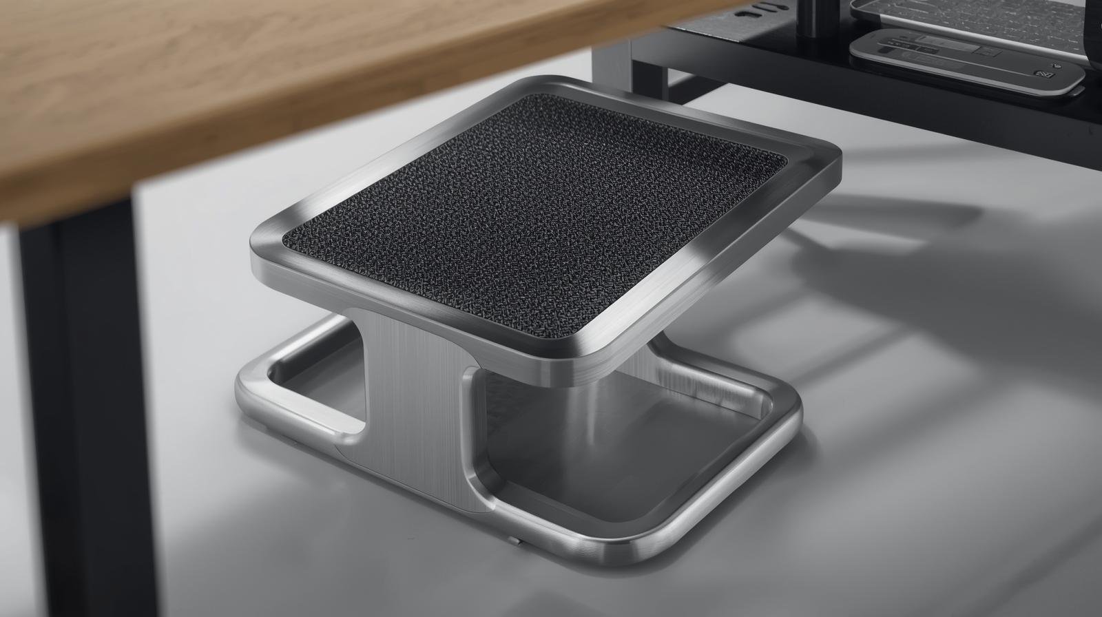 Un reposapiés ergonómico permite mantener los pies apoyados correctamente cuando la altura de la silla o del escritorio no es la ideal. Esto ayuda a: